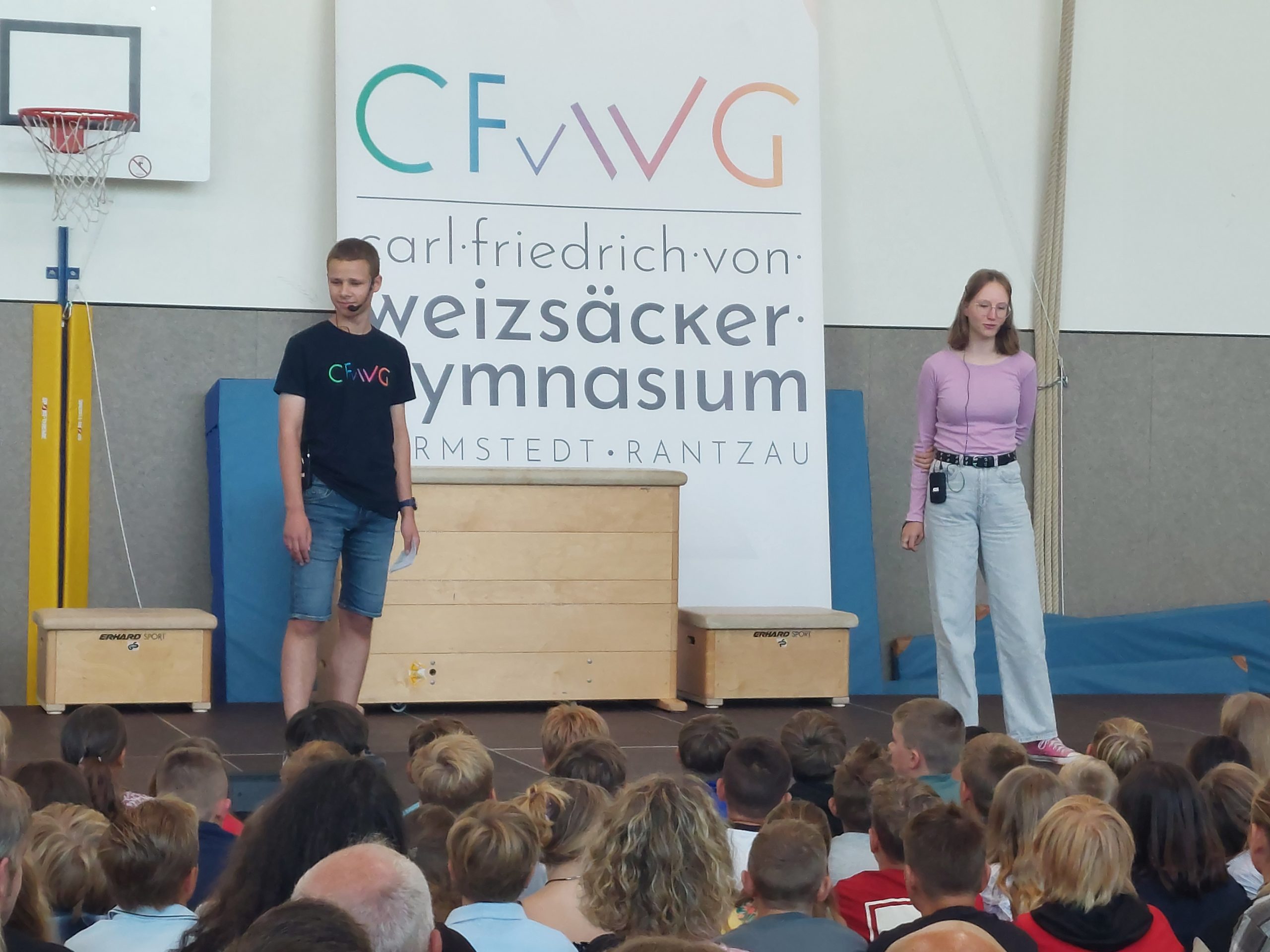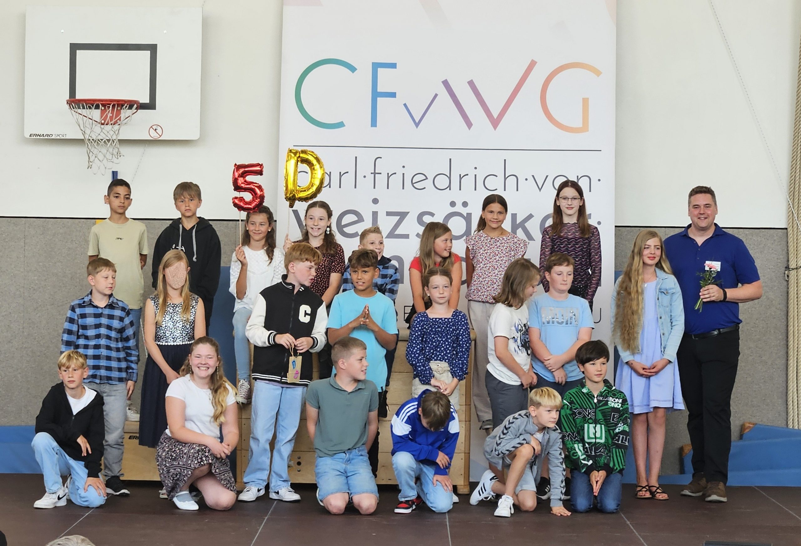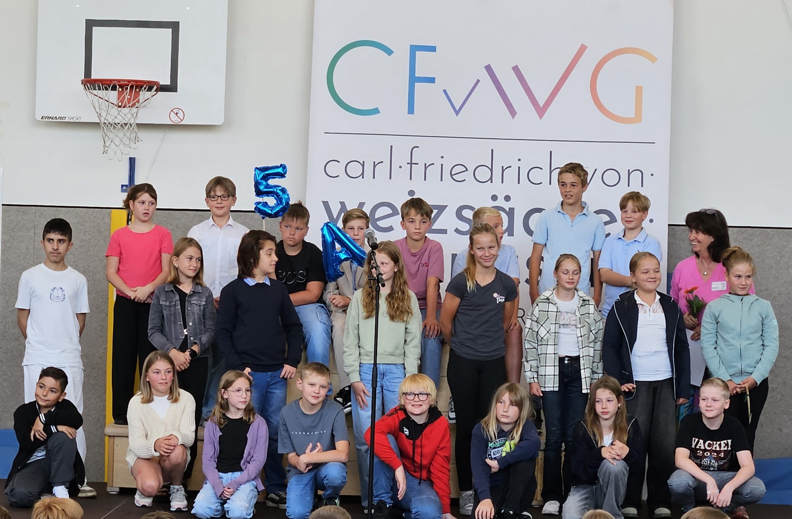 Insgesamt war es eine schöne Veranstaltung, für die wir uns bei allen Beteiligten, insbesondere den Organisierenden und allen, die für ein hervorragendes Bühnenprogram gesorgt haben, bedanken wollen. Abschießend wünschen wir natürlich allen neuen 5. Klässlerinnen und Klässlern einen erfolgreichen Start am Gymnasium und eine gute Zeit bis zum Abitur an CFvWG.